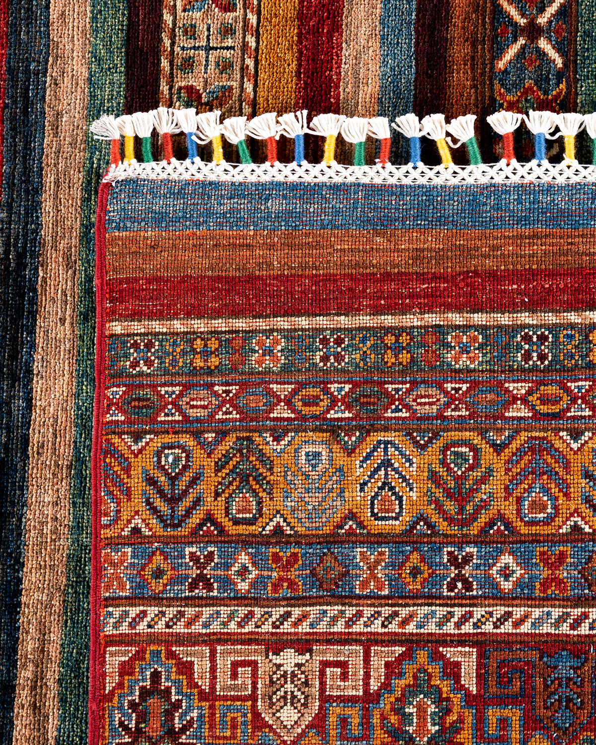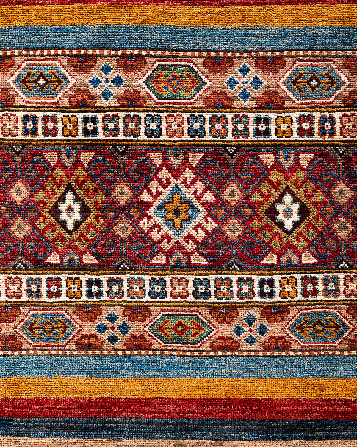 The rich textile tradition of western Africa inspired the Tribal collection of hand-knotted rugs. Incorporating a medley of geometric motifs, in palettes ranging from earthy to vivacious, these rugs bring a sense of energy as well as plush texture to any room.